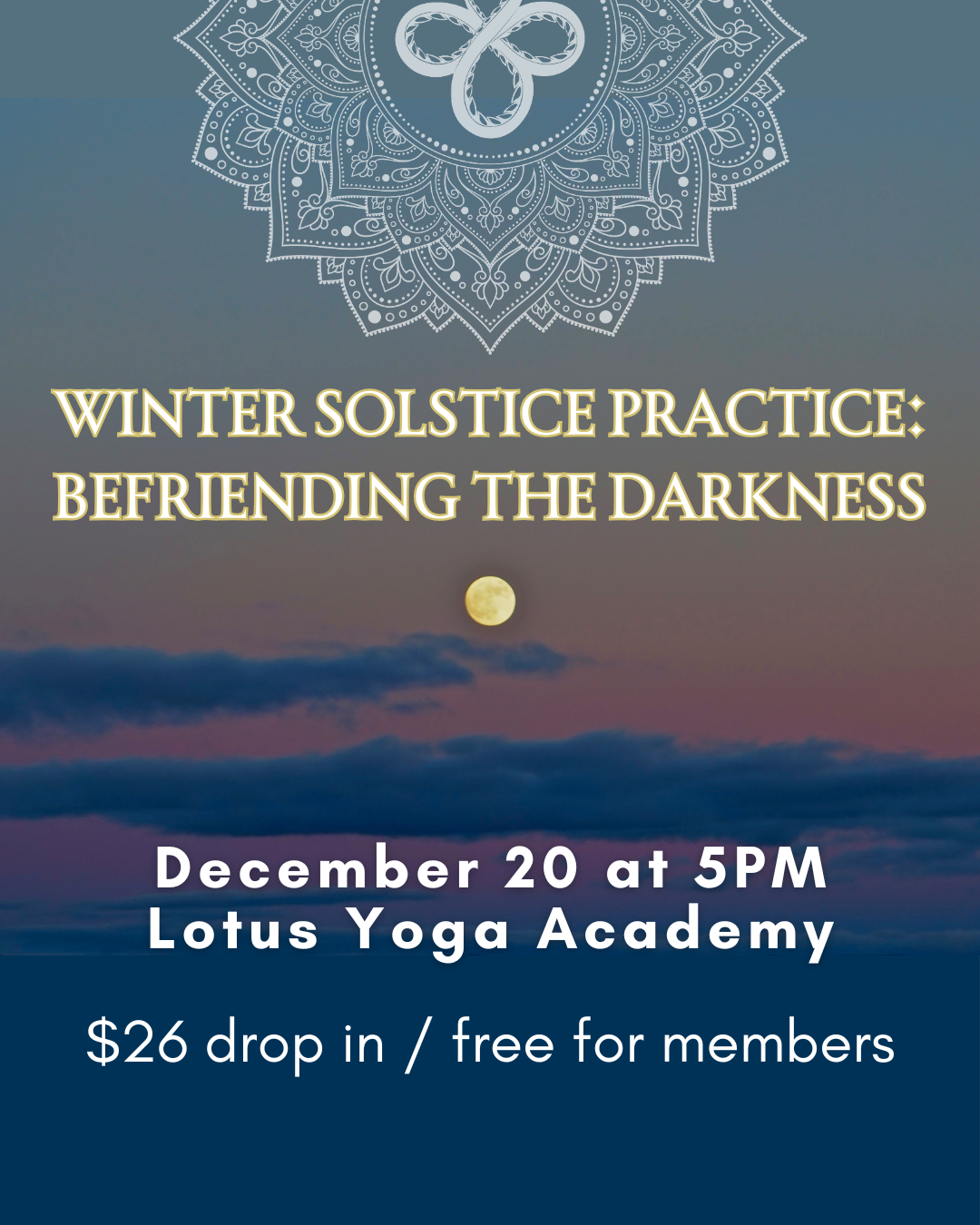 Join Michelle C. Johnson for a special Winter Solstice Practice. The Winter Solstice is an auspicious time of year. It is a time when we experience the darkest, longest night. This time of darkness is intertwined with the returning light. During this practice, Michelle will guide you in exploring your relationship with the darkness and the polarity of the dark and light. She will guide you through movement, meditation, pranayama, and self-reflection. This is an all-levels class. Bring a journal with you and anything else that would feel supportive.